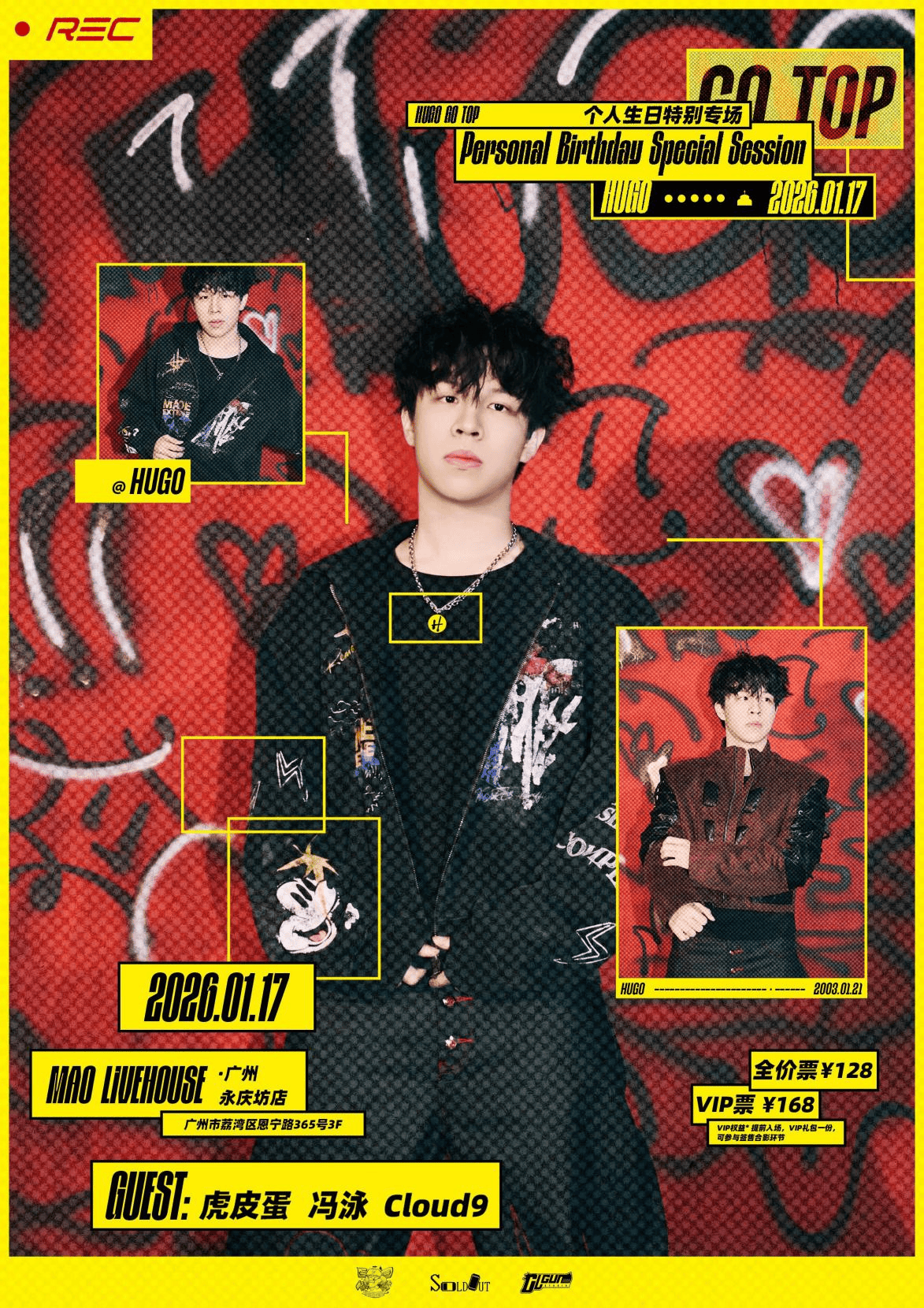 Hugo,白日做梦studio主理人,网易云飓风旗下艺人,网易云多首单曲破千万播放,多次登上各大榜单。演出经验丰富,20年首次主办演出即突破百人,23年成为农夫广州万人演唱会嘉宾,24年顺利举办首个个人百人专场,25年顺利举办个人巡演“另一个镜头下”。以极具个人特色的曲风和有内容深度的歌词斩获许多歌迷的喜欢,并尝试在个人风格里保留更多粤语元素,让外界听到Hugo和广州的声音。此次特别专场邀请了虎皮蛋、冯泳、Cloud9作为演出嘉宾。