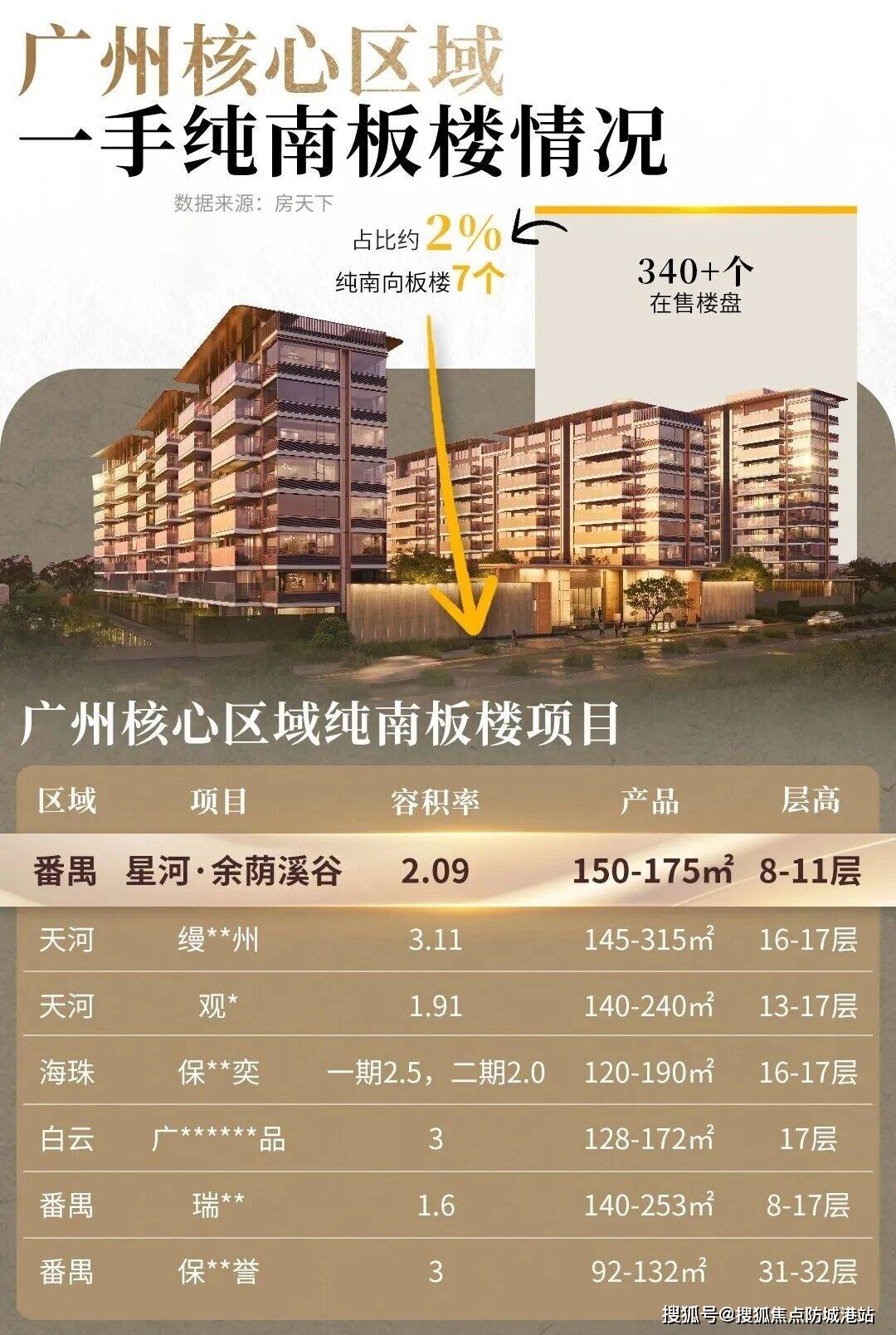 在广州这座城市,尤其是核心区域,土地资源日益稀缺,高强度开发已成为常态。动辄三四十层高的超高层住宅林立,虽然解决了部分人的居住问题,但往往以牺牲隐私、舒适度为代价,仅能满足“有居”的基本需求,难以实现“优居”的美好愿景。然而,星河·余荫溪谷却在这片寸土寸金的土地上,奇迹般地保留了低密度的土地基因,其容积率仅为约2.09,这在过去的五年中,全市出让的二百七十四宗地里,容积率在2.0以内的仅有二十九宗,占比约为百分之十。