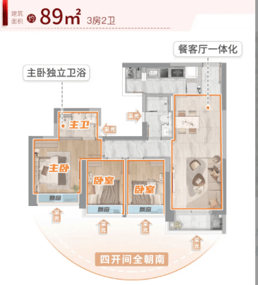 对于追求极致居住体验的改善型客户,新世界天馥提供了98㎡、128㎡和139㎡三款四房户型,总价分别从382万元、499万元和542万元起。98㎡四房两卫堪称全能户型,在百平内做到了四空间设计,主卧套房私密性强,部分户型还能瞰江,性价比极高。128㎡四房两卫是东南向瞰江户型,超16米面宽,独门独户设计,可分可合的成长型空间,能满足二人世界到三代同堂的需求。139㎡四房两卫空间更开阔,餐客一体化设计搭配大阳台,精装标配博世、高仪等国际品牌,居住舒适度拉满。